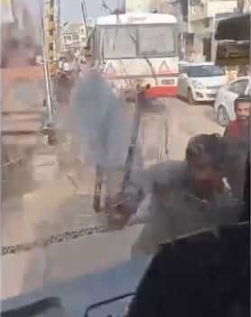 इसके साथ ही ड्राइवर और कंडक्टर ने आरोप लगाया की कंडक्टर के कपड़े भी फाड़ दिए है आपको बता दे की यह वीडियो बहुत तेजी से सोशल मीडिया में फ़ैल रही है | पुलिस ने मौके पर पहुंच के पूछताछ शुरू कर दी है |