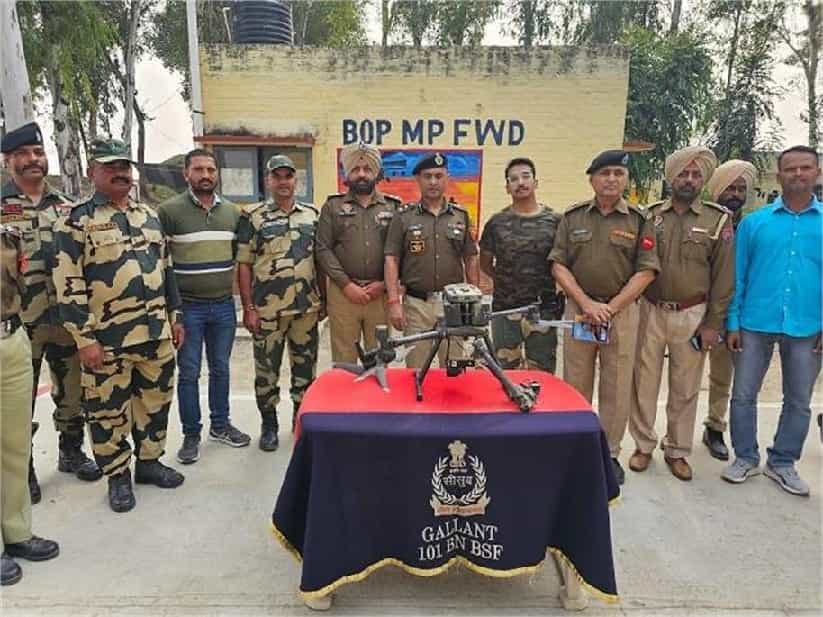 इस दौरान थाना खेमकरण पुलिस और बीएसएफ की 101 बटालियन द्वारा सयुक्त रूप से चलाए गए तलाशी अभियान के दौरान मेहंदीपुर के खेतो से एक चाइना का बना ड्रोन बरामद किया गया है उन्होंने बताया की ड्रोन को कब्जे में लेते हुए आगे कार्यवाई शुरू कर दी गई है |