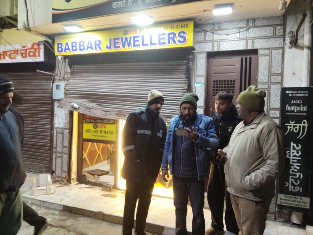जालंधर (Public Updates TV): जालंधर महानगर में अपराधियों के हौसले लगातार बुलंद होते जा रहे हैं। ताजा मामला शहीद बाबूलाल सिंह नगर स्थित बब्बर ज्वेलर्स का है, जहां देर रात सुनियोजित तरीके से करीब एक दर्जन चोरों ने ज्वेलरी शॉप को निशाना बनाया। चोर सिब्बल से ताले तोड़कर दुकान के भीतर घुसे और कुछ ही मिनटों में 25 तोले चांदी व 6 तोले सोने के कीमती गहने समेटकर फरार हो गए। पीड़ित दुकानदार सोनू बब्बर के अनुसार चोरी की कुल कीमत लगभग 80 लाख रुपये आंकी गई है।