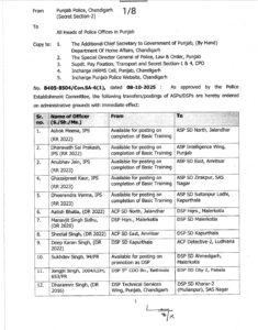 चंडीगढ़ (Public Updates TV): पंजाब सरकार ने प्रशासनिक सुधार और बेहतर सेवा वितरण के लिए बड़े पैमाने पर अधिकारियों के तबादले और नियुक्ति आदेश जारी किए हैं। इस बार के आदेशों में कुल 133 अधिकारियों के पदों में बदलाव किया गया है, जिसमें पांच आईपीएस अधिकारियों को नई जिम्मेदारियों और तैनाती के साथ भेजा गया है।