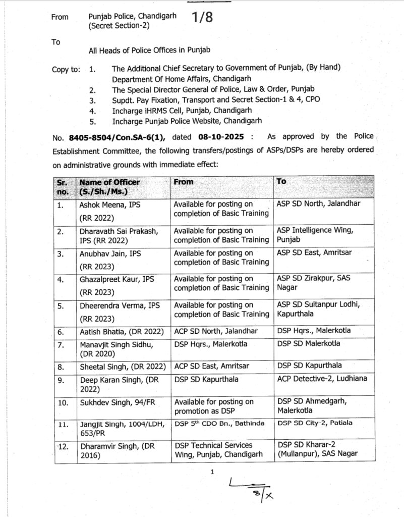 पिछले कुछ समय से विभिन्न विभागों में सुधार और गति लाने के प्रयासों के तहत यह एक महत्वपूर्ण प्रशासनिक पहल मानी जा रही है। अधिकारियों और कर्मचारियों को नई जिम्मेदारियों के अनुरूप तैनात कर, पंजाब सरकार राज्य में सशक्त प्रशासन और बेहतर सरकारी सेवाओं को सुनिश्चित करने की दिशा में आगे बढ़ रही है।