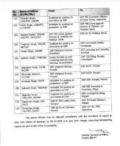 इसके अलावा डीएसपी स्तर के कई अधिकारियों के भी तबादले किए गए हैं, ताकि राज्य के विभिन्न जिलों और तहसीलों में प्रशासनिक और पुलिसिंग कार्यों में प्रभावी संचालन सुनिश्चित किया जा सके। अधिकारियों के स्थानांतरण का उद्देश्य केवल प्रशासनिक सुधार ही नहीं, बल्कि जनसुरक्षा, अपराध नियंत्रण और क्षेत्रीय कार्यकुशलता को बढ़ावा देना भी बताया गया है।
