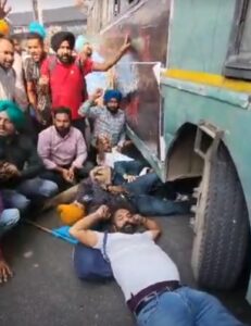 अमृतसर में हाईवे जाम करने पहुंचे कर्मचारियों और पुलिस के बीच धक्कामुक्की और हंगामा देखने को मिला। हालात बिगड़ते देख कुछ कर्मचारियों ने बस के नीचे लेटकर विरोध प्रदर्शन किया।