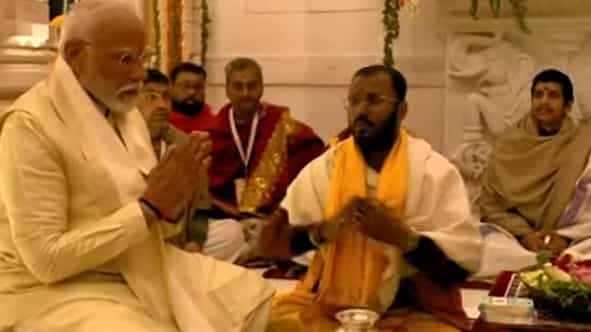 प्रधान मंत्री नरेंद्र मोदी राम लाला गर्भ गृह में जा चुके है और पूजा की शुरुआत कर दी गई है | PM मोदी जी द्वारा पूजा की जा रहे है | प्रधान मंत्री जी द्वारा सकल्प लिया जा रहा ही रिक वेद के 11 मंत्र पढ़े जा रहे है जैसे ही 11 व मंत्र होगा प्राण प्रतिष्ठा हो जाएगी है |