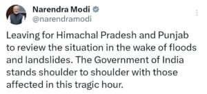 नई दिल्ली/चंडीगढ़/हिमाचल (Public Updates TV): पंजाब और हिमाचल में बाढ़ से मची तबाही के बीच प्रधानमंत्री नरेंद्र मोदी के प्रदेश दौरे को लेकर राजनीतिक हलकों में हलचल तेज हो गई है। सभी दलों के नेता अपने-अपने दृष्टिकोण से इस दौरे को लेकर प्रतिक्रिया दे रहे हैं।